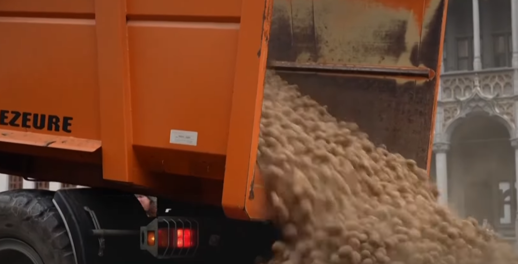 Nakon što su iz kamiona istovarili velike količine krompira, demonstranti su razvili transparente kojima su apelovali na solidarnost unutar Evrope i veće uvažavanje interesa lokalnih proizvođača hrane.