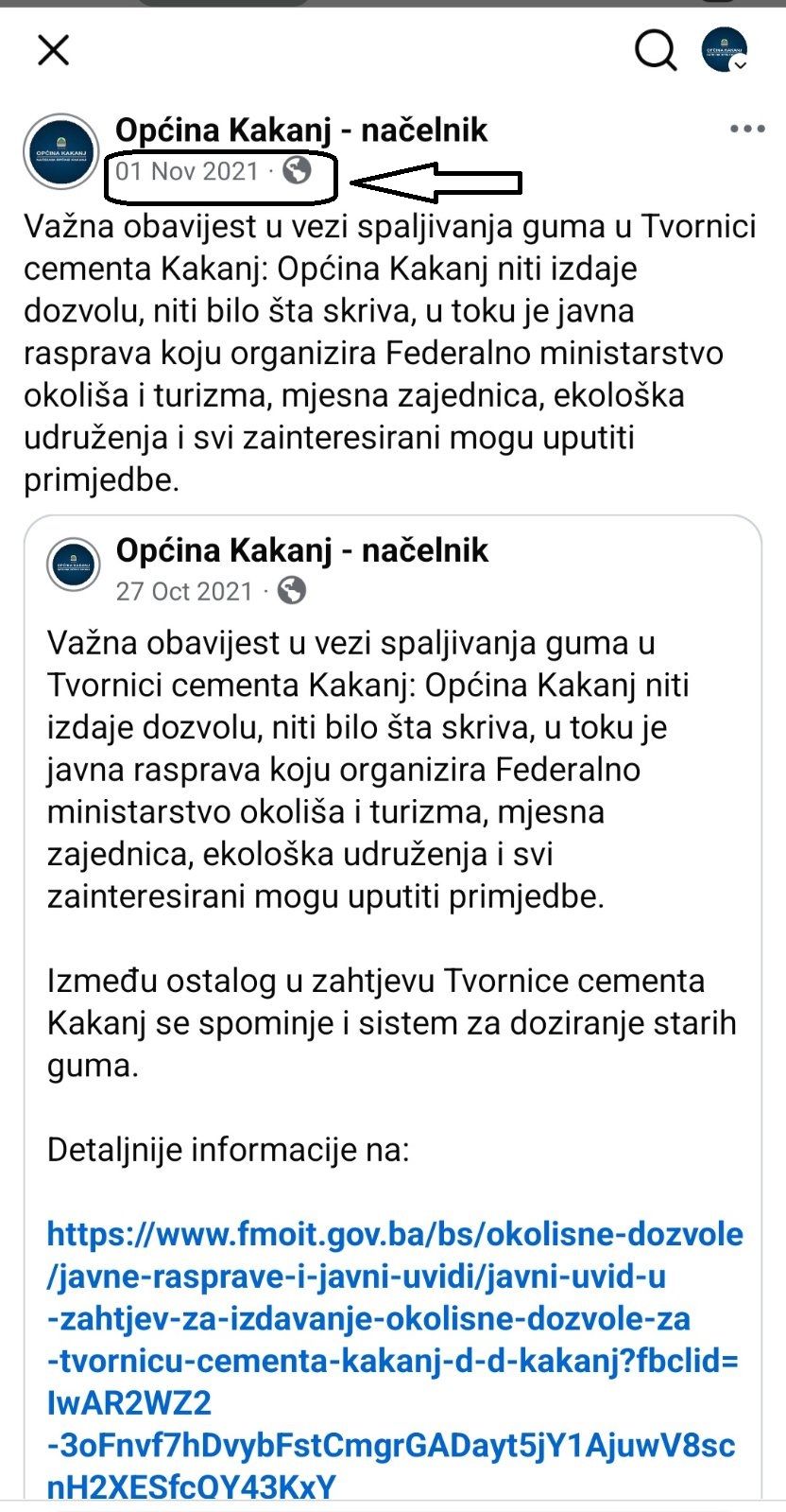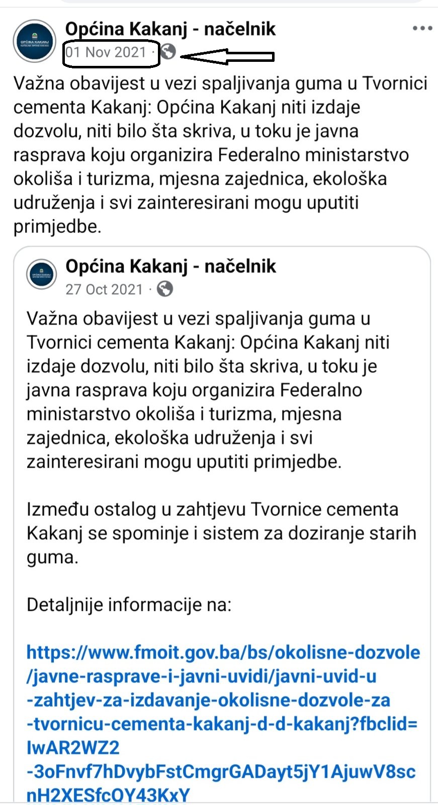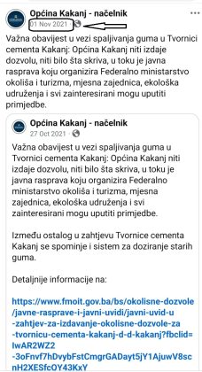U tom kontekstu, načelnik Bajtarević se oglasio zvaničnim saopćenjem, potkrijepljenim dokumentacijom i dokazima iz perioda kada se pitanje spaljivanja guma prvi put otvorilo – oktobra 2021. godine. Tada je Tvornica cementa Kakanj bila u postupku ishodovanja okolinske dozvole na federalnom nivou, koja je, između ostalog, uključivala i mogućnost korištenja guma kao alternativnog goriva.