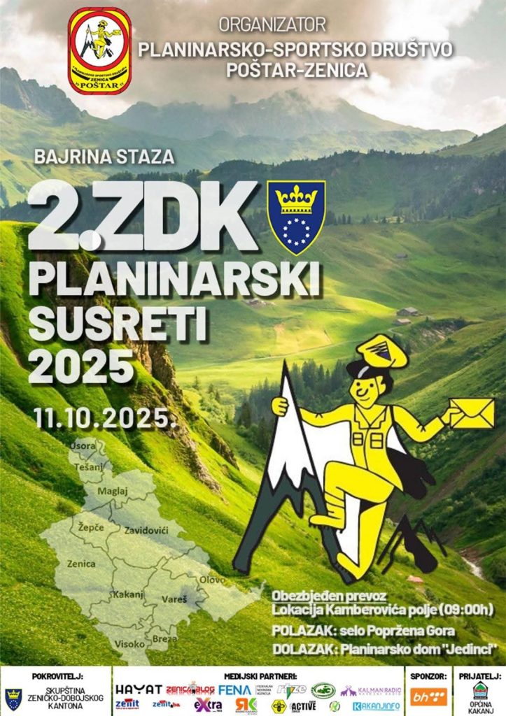 Planinarsko-sportsko društvo “Poštar” Zenica organizuje drugu po redu manifestaciju: “ZDK Planinarski susreti 2025.“ koja će se održati 11. oktobra 2025.godine (SUBOTA).