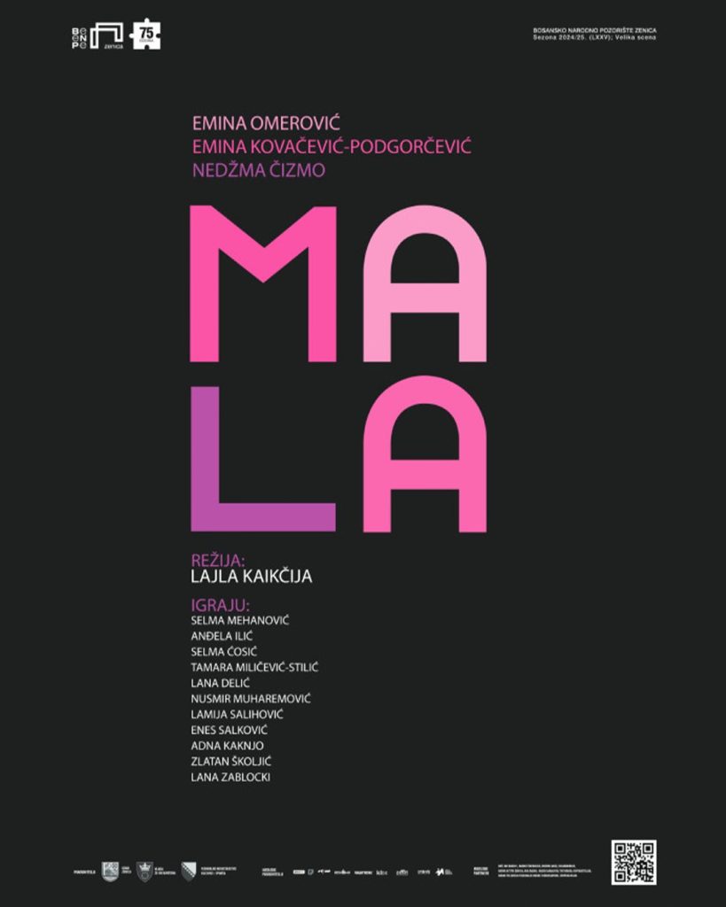 Predstava „Mala“ bit će izvedena na sceni Doma kulture Kakanj u srijedu, 28. januara 2026. godine, s početkom u 19 sati, a trajanje predstave je 95 minuta. Autorice teksta su Emina Omerović, Emina Kovačević-Podgorčević i Nedžma Čizmo, dok režiju potpisuje Lajla Kaikčija. Na sceni nastupa brojna glumačka ekipa Bosanskog narodnog pozorišta Zenica, među kojima se posebno ističu mlade glumice i glumci nagrađeni na domaćim pozorišnim festivalima.