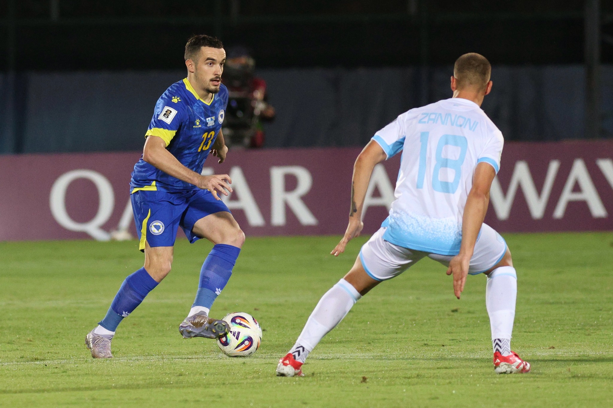 Što se tiče same utakmice, dileme oko pobjednika nije bilo ni u jednom trenutku. U ranoj fazi Džeko je propustio dobru šansu, a zatim je Tahirović natjerao domaćeg golmana na intervenciju. Ključni detalj stigao je u 21. minuti debitant Kerim Alajbegović srušen je u kontri, a kapiten San Marina Golinucci je isključen.