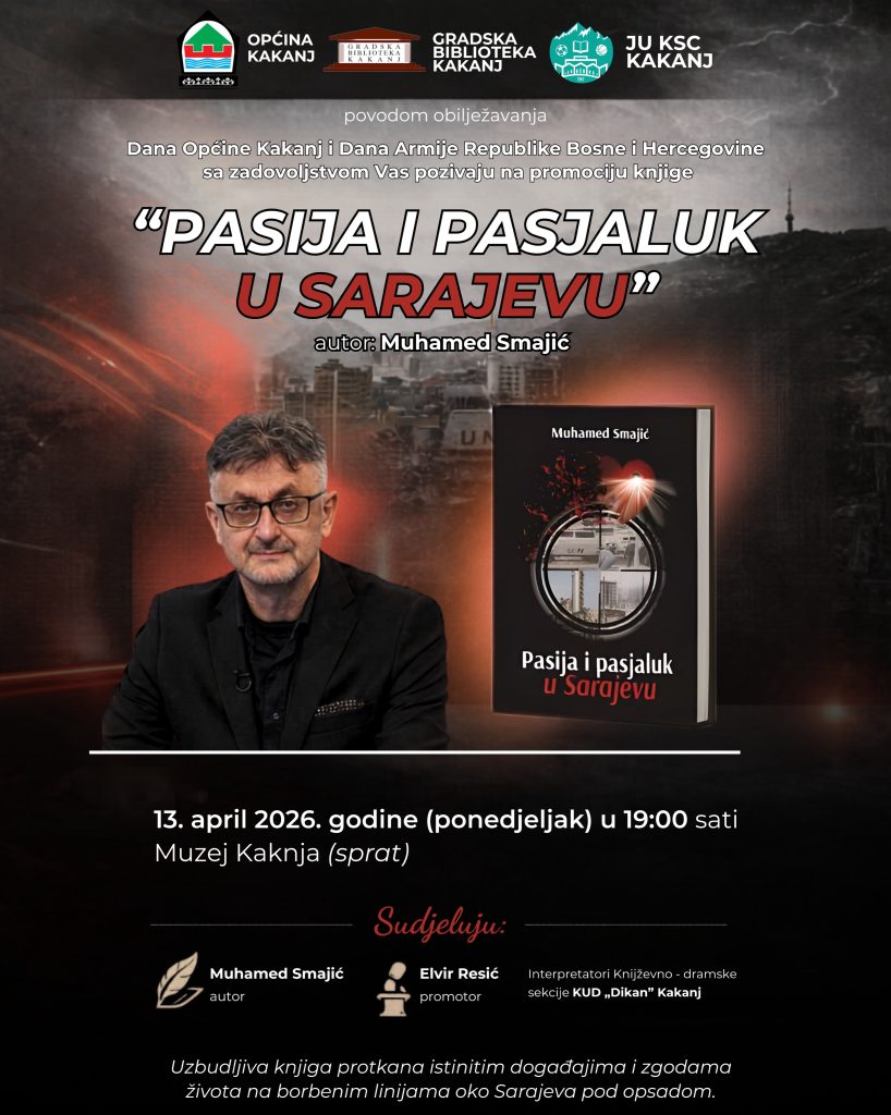 Povodom obilježavanja Dana Općine Kakanj i Dana Armije Republike Bosne i Hercegovine, u ovom gradu bit će upriličena promocija knjige „Pasija i pasjaluk u Sarajevu“, autora Muhameda Smajića.