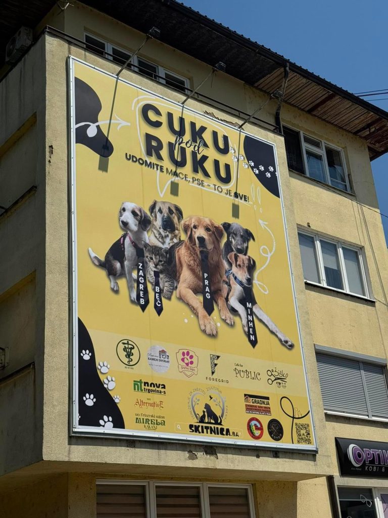 Udruženje “Skitnica” poručuje da je cilj ovog billboarda podsjetiti ljude na važnost brige o životinjama, posebno onima koje su ostale bez doma.